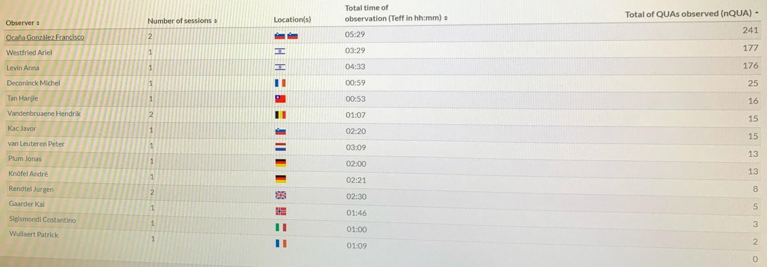 חישובים ראשוניים מראים כי בשיאו, הגיע המטר לקצב של כ-130 מטאורים בשעה. בולידים מרשימים נצפו, ולקראת הזריחה הירח ונוגה, בשילוב כיפות הטלסקופים של המצפה ואור השחר, יצרו תמונה מרהיבה.